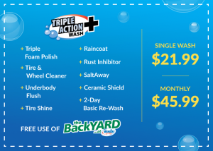 The BackYARD is an outdoor, DIY interior cleaning area that’s now open year round! This welcoming space provides customers with vacuums, all-purpose spray cleaner, mat cleaning machines, and towels so they can clean their own interiors. There are also tire filling stations. The BackYARD is offered at our Cambridge, London (Dundas), London (Wellington), and Chatham locations.